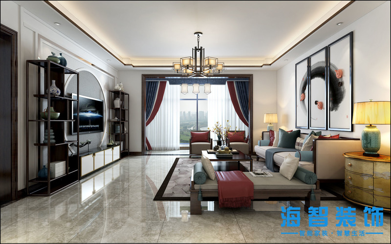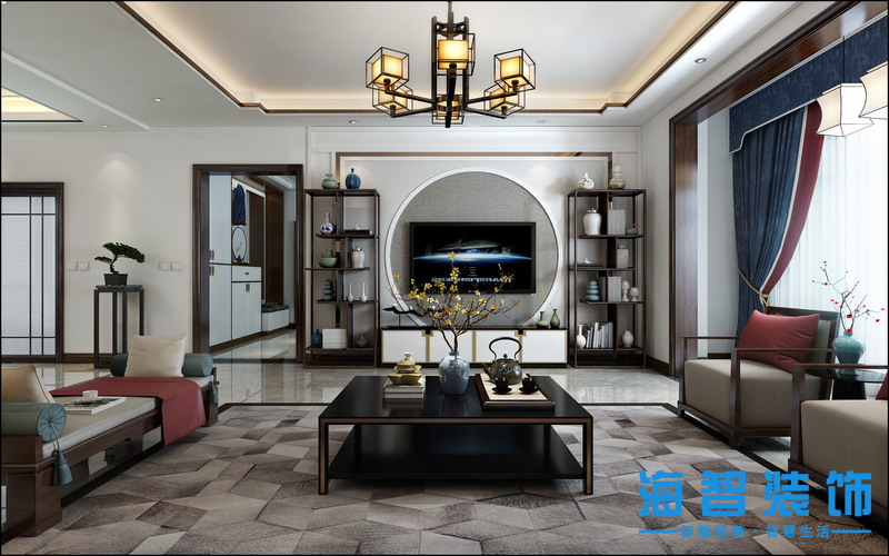 中泰雅居裝修效果圖新中式風格設計案例——沙發(fā)背景墻
