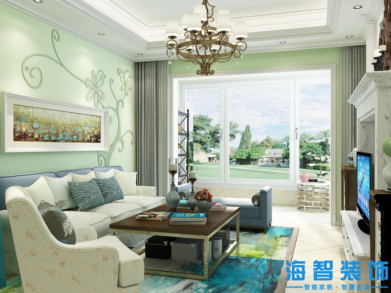 綠城翡翠園87平田園風(fēng)格裝修案例——客廳設(shè)計